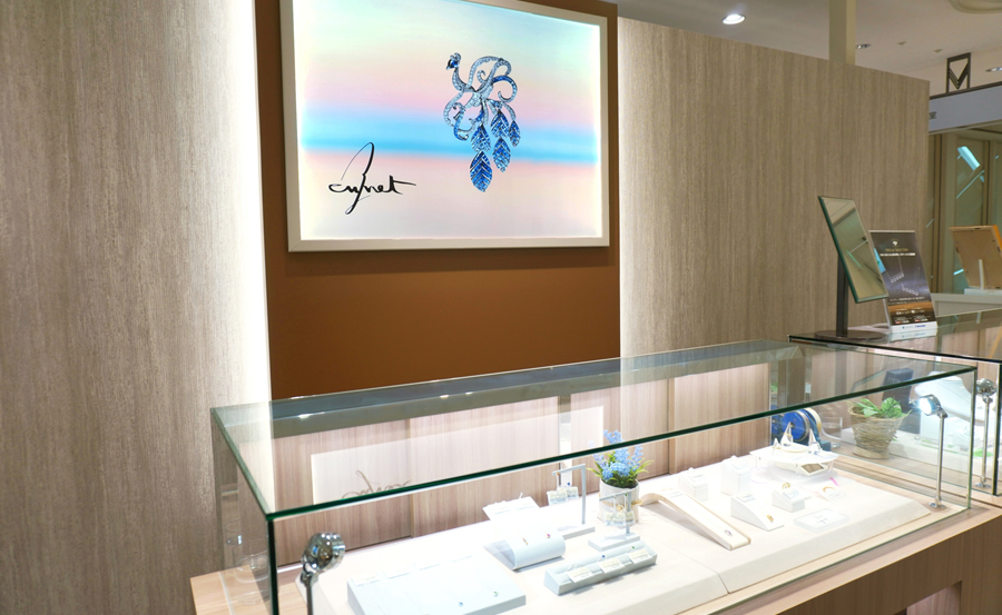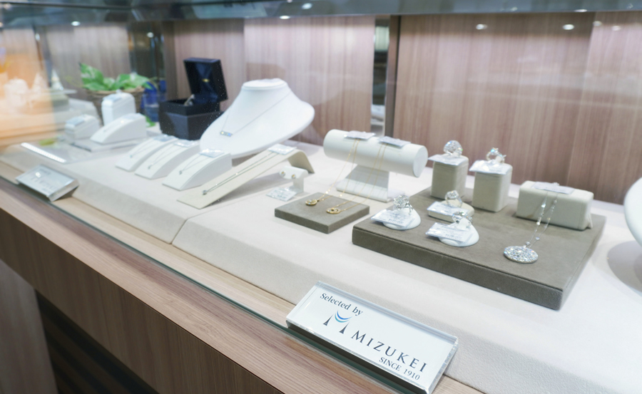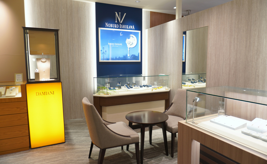 「ダミアーニ」「ノブコイシカワ」「ジュネ」など、多彩なジャンルのジュエリーを取扱い。ブライダルコーナーでは「サムシングブルー」「ブルーリバー」など日本製の信頼あるブランドを取り揃えております。また、ジュエリーを新たなデザインにリフォームするリモデル、修理なども対応しており、充実したアフターサービスで、安心してお買い物をお楽しみいただけます。